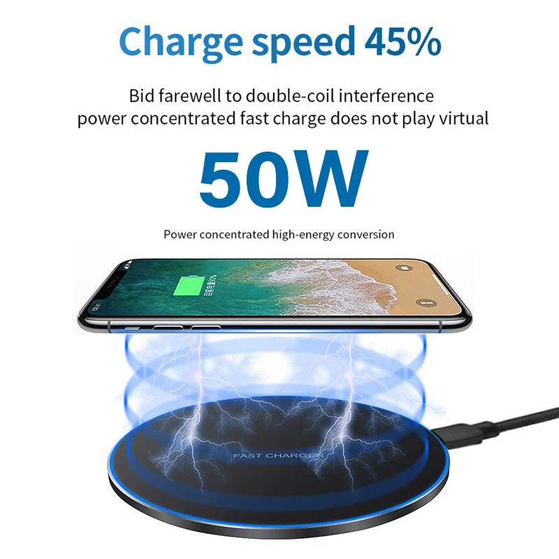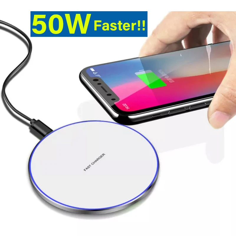 50W Fast Wireless Charger Pad For iPhone 14 13 Xiaomi Huawei Doogee Samsung Mobile Phone Charger Wireless Charging Dock Station