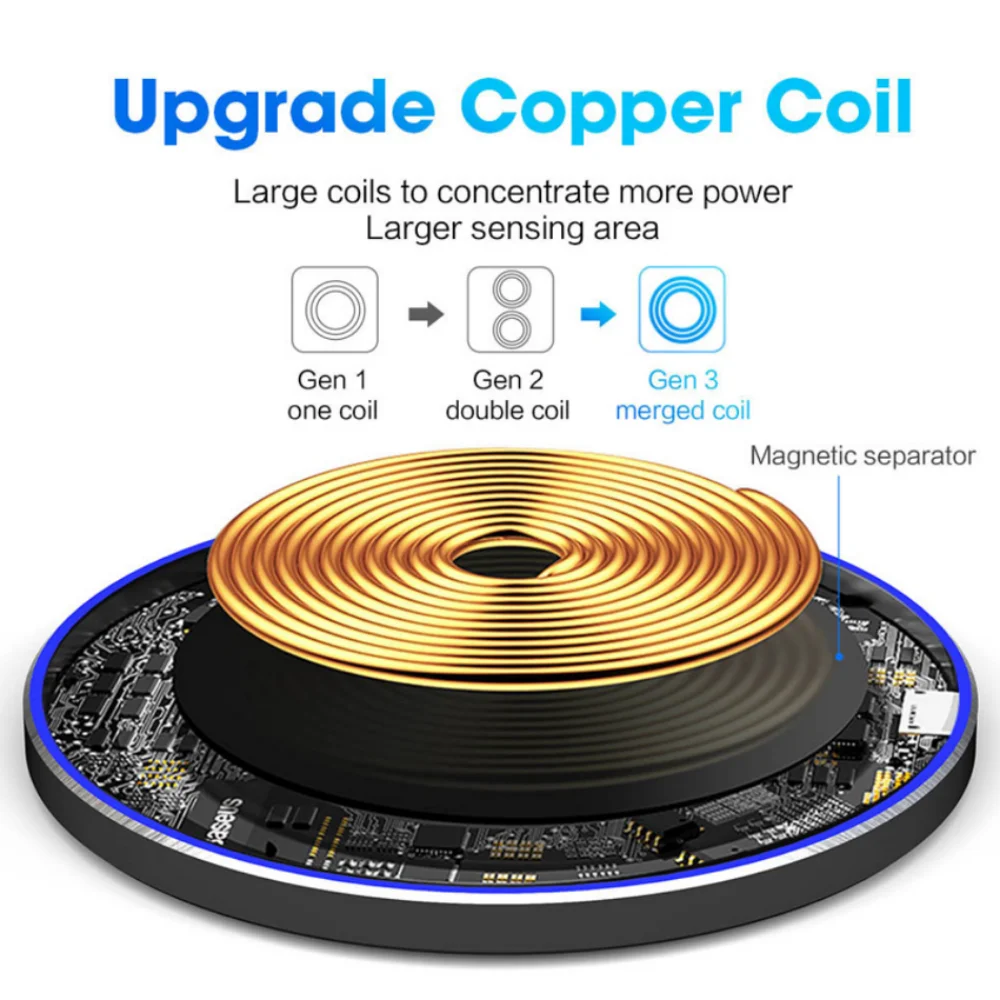 Slim and Cool Design: Lightweight,sleek,compact design with non-slip rubber. This wireless charging pad is just 6mm/0.23inch super slim and takes up very little space make it easier to put it in pockets, a high speed wireless power charging pad can be easily carried during travel or business,This charger feels solid and looks great no matter using it in the office or at home.